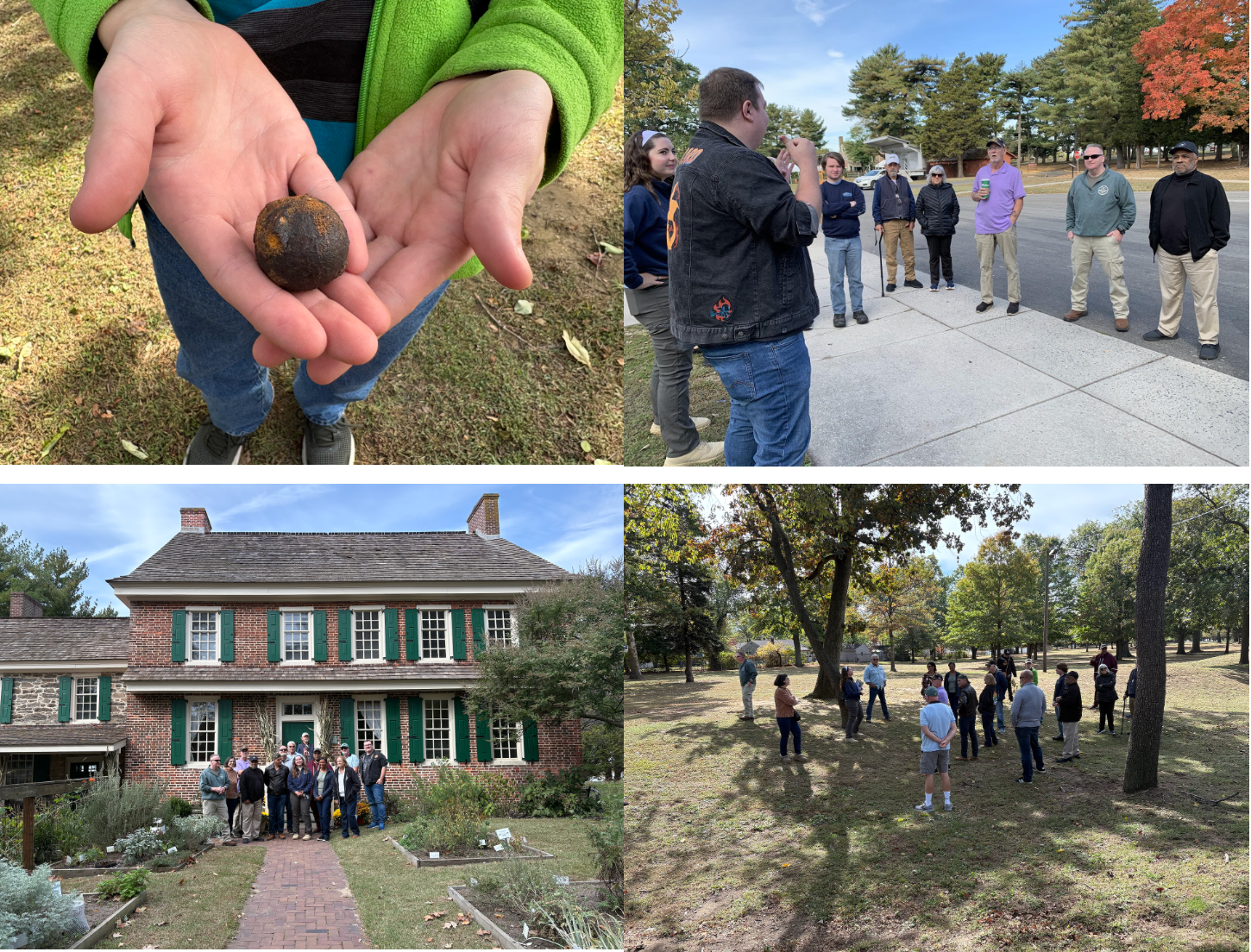 On October 18th, the group gathered in person for the first time at Red Bank Battlefield in National Park, New Jersey. Graduate student and tour guide Emily Schmidt led the class through the historic site, sharing discoveries from recent archaeological excavations, including the remarkable find of a Hessian soldier burial site, and exploring the legacy of a WPA restoration project. The group also toured the historic James and Ann Whitall house. As Course Director Denise Coulter explained, “While the subject matter of the trip was often solemn, the experience offered meaningful moments of connection, reflection and camaraderie.”